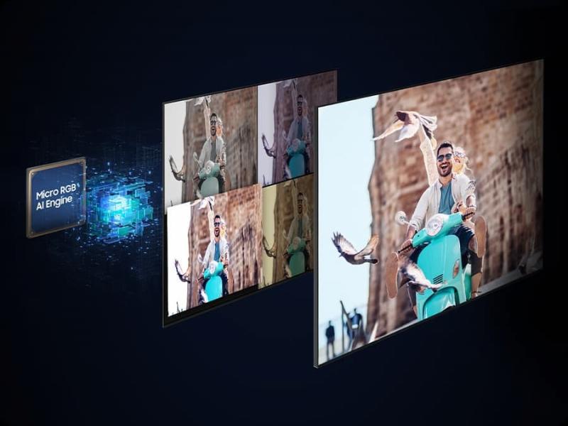Experience the unparalleled contrast ratio and colour expression of Micro RGB HDR+, which captures subtle details in both bright and dark scenes, delivering the original depth of the video. 2