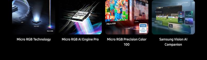 Through Micro RGB Technology and the Micro RGB AI Engine Pro, Samsung Micro RGB TV achieves the world's first 100% BT.2020 Wide Colour Gamut coverage. Certified by VDE for the world's first Micro RGB Precision Colour, it ensures Colours are finely and precisely controlled for a viewing experience that is nearly indistinguishable from reality.1