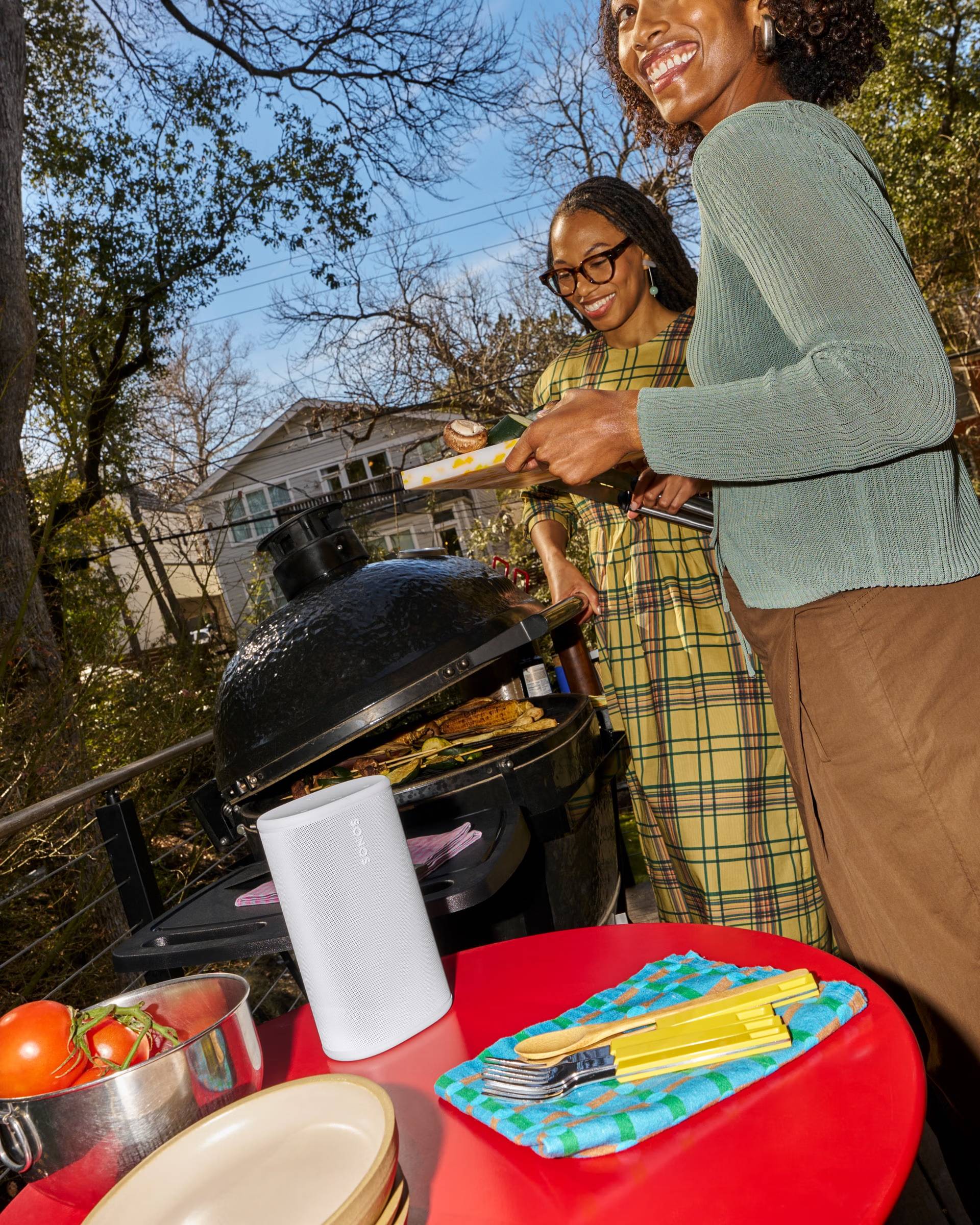 Sync two or more Sonos Play or Move 2 speakers over Bluetooth to fill your campsite or park picnic with powerful sound.