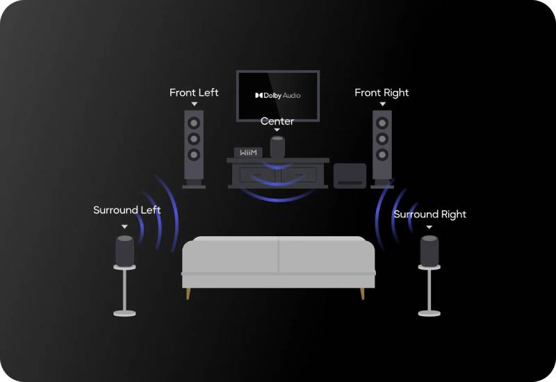 Add WiiM Sub Pro to deepen and tighten the bass, or pair WiiM Sound with WiiM Ultra or Amp Ultra to assign center or surround roles in a compatible WiiM home‑theater setup.