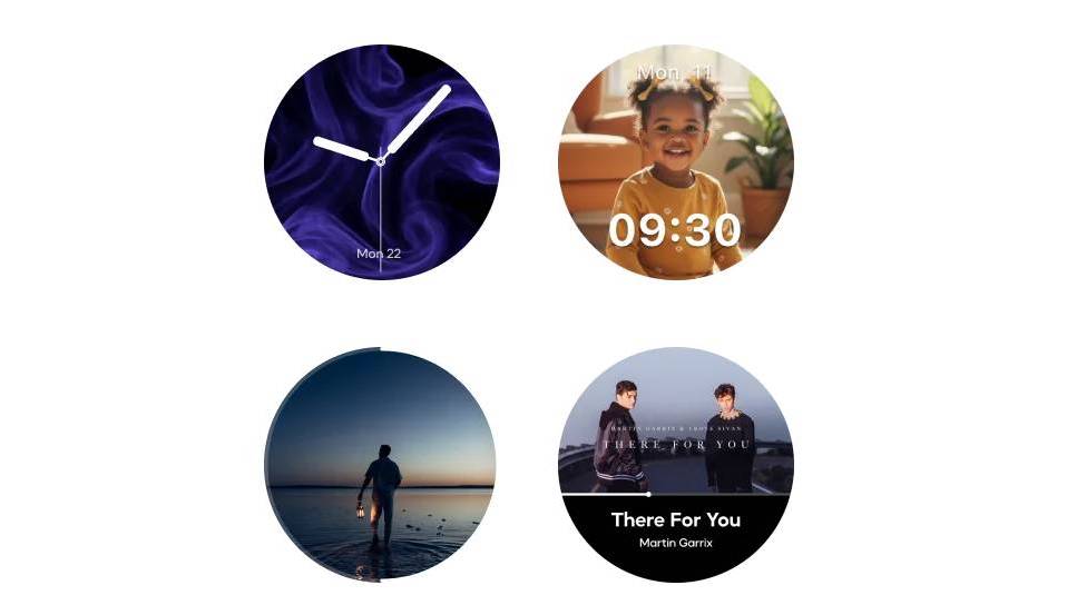 Multiple clock faces, dynamic wallpaper, album art, and playback options.