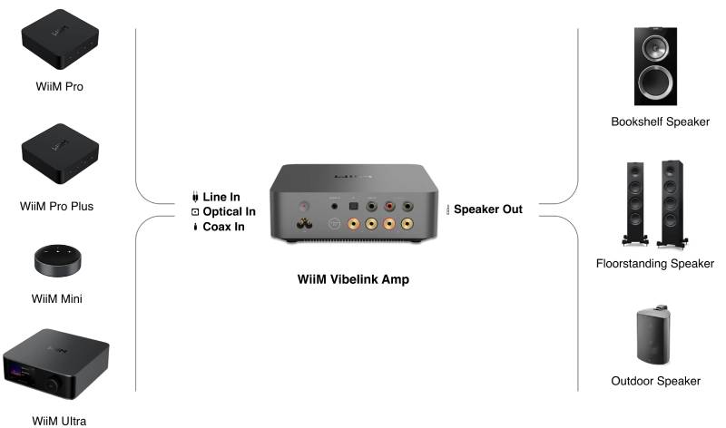 Pair your WiiM Mini, Pro, Pro Plus, or Ultra with the WiiM Vibelink Amp and experience pure, powerful, and immersive sound like never before. Elevate your high-fidelity streaming with crystal-clear detail, deep bass, and room-filling audio.Your music, perfected. Upgrade your setup today!